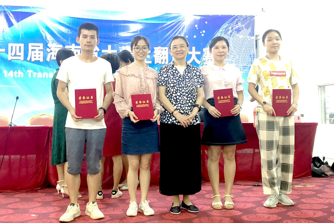 △徐佳琪同学(右一)荣获海南省第十四届大学生翻译大赛中荣获二等奖