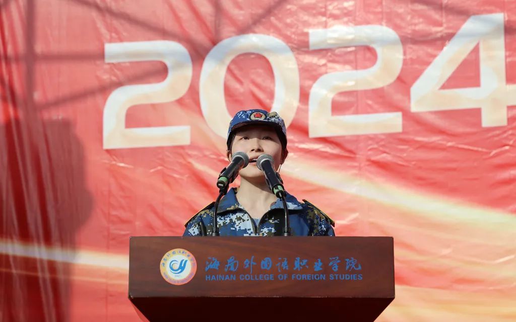来自英语学院的新生代表江华在发言中表示,军训不仅仅是关于个体的挑战,更是团队精神的磨砺,同学们将充分发挥不怕苦不怕累的精神,以饱满的热情、昂扬的斗志接受考验,圆满完成军训任务。