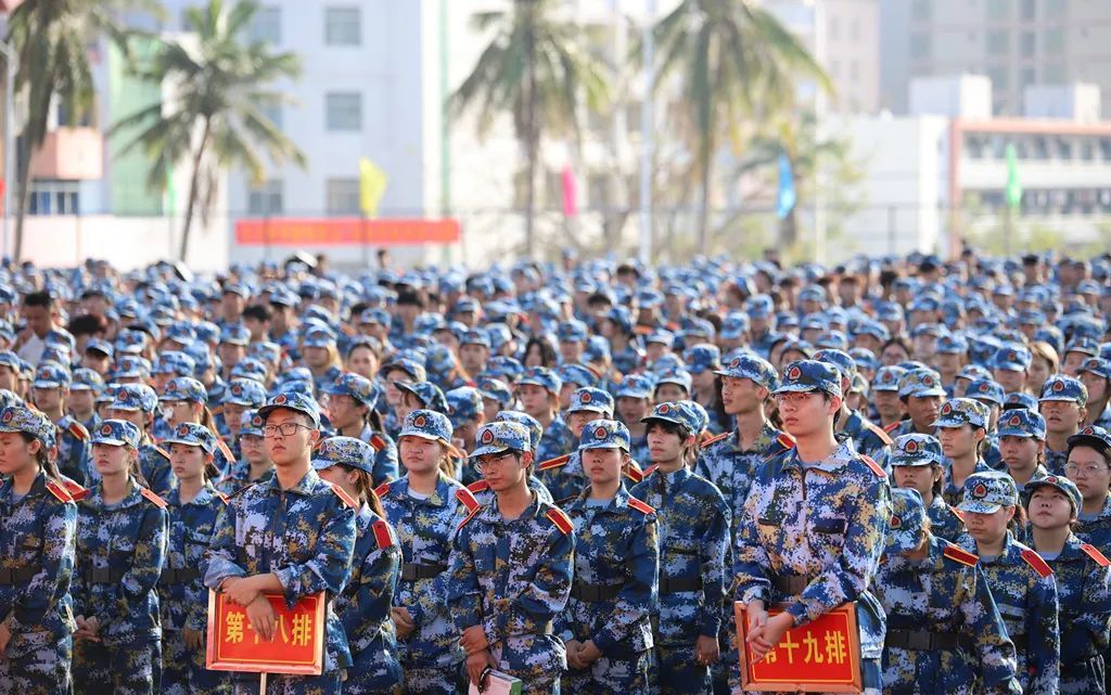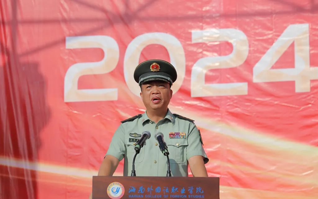 黄学彬在动员讲话中向3600多名新同学们表示欢迎和祝贺,向承担本次军训任务的武警海警总队第四支队表示感谢。他指出,今年的新生入学较往年更为特殊,学校刚刚经历超强台风“摩羯”侵袭,校园环境受到严重损害。在全校师生的共同努力下,当前学校教学和生活秩序已基本恢复正常,但重建工作仍在持续进行,学校新校区建设也即将启动。在学校发展最为关键的时期,希望同学们能给予理解和支持,与学校携手共进,共建更加美丽的校园,并以最饱满的热情投入到军训和以后的学习中。
