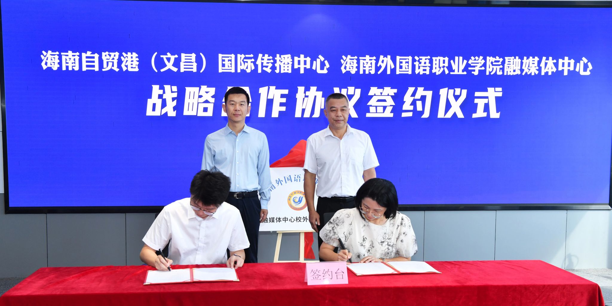 5月20日上午,beat365融媒体中心与海南自贸港(文昌)国际传播中心战略合作协议签约仪式在文昌市融媒体中心举行。学校党委副书记梁松,文昌市委常委、副市长魏波出席仪式,共同见证双方协议签署。