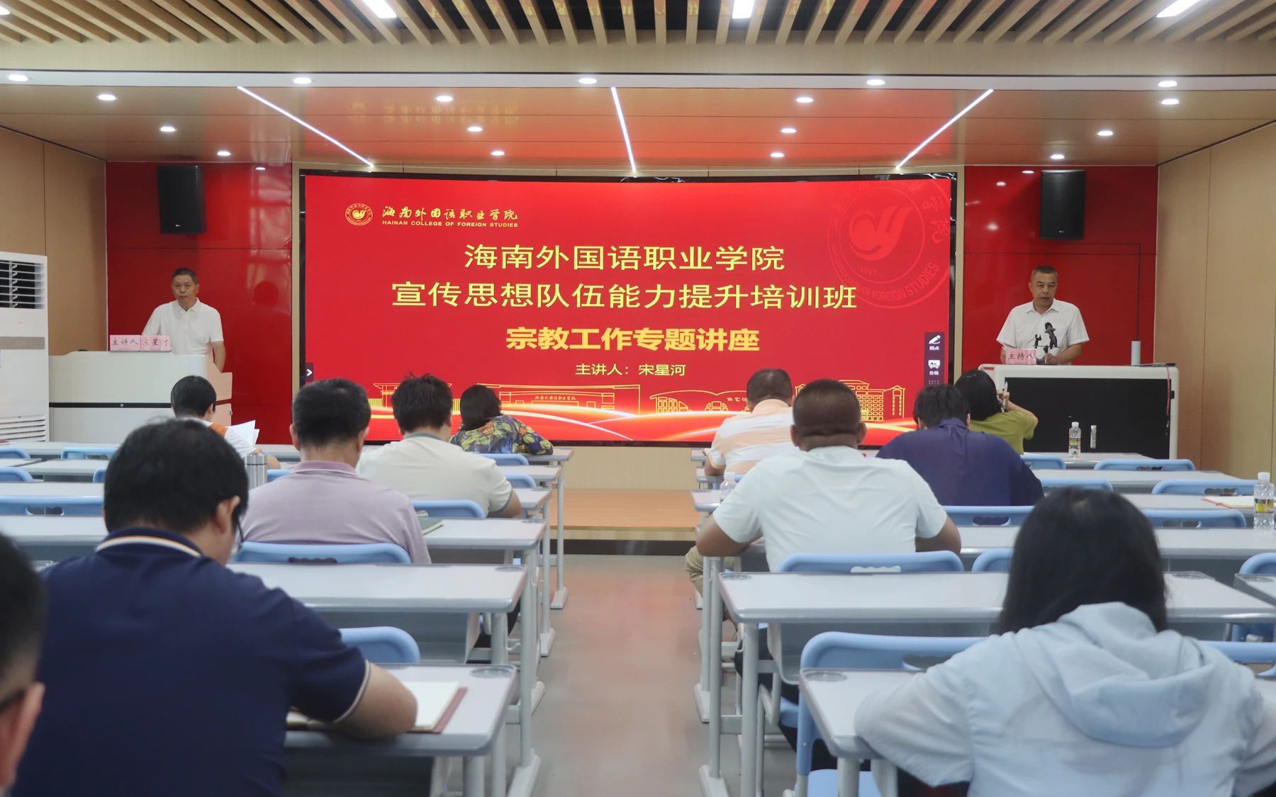 5月22日上午,beat365举办题为“马克思主义宗教观与高校宗教治理”专题讲座,邀请海南省宗教服务中心(海南省宗教研究中心)主任、省委统战部一级调研员宋星河到校主讲。学校党委副书记梁松主持讲座。