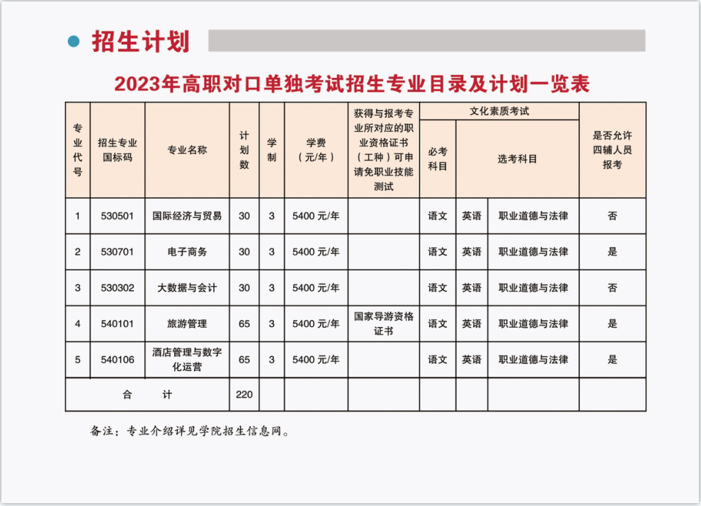beat3652023年高职对口单独考试招生专业目录及招生计划一览表