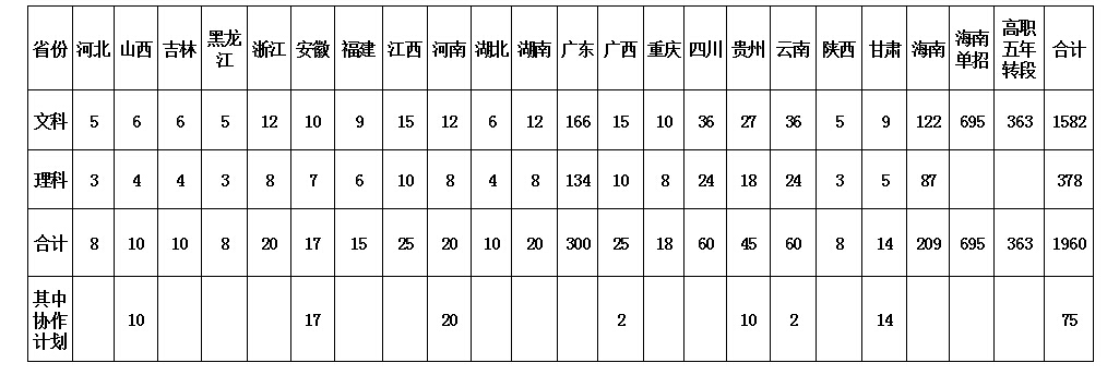 我院2016年高职分省分专业招生计划投放一览表