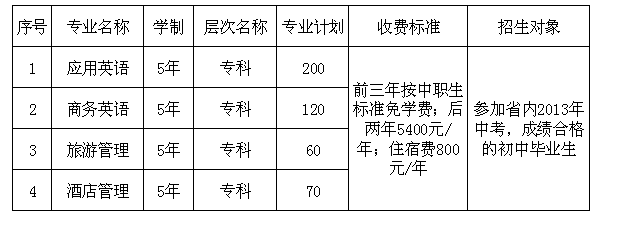 我院2013年五年一贯制招生专业及计划安排表